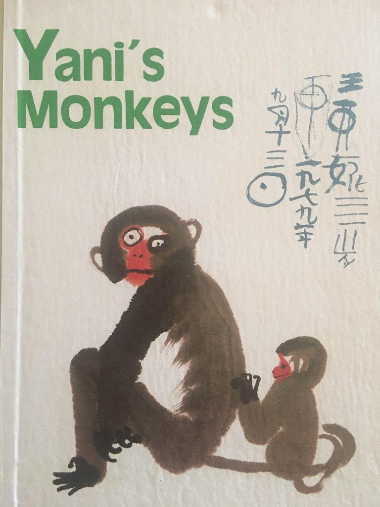 Wang Yani was certainly a child prodigy. First discovered before she was even three years old, Yani painted the picture on the cover of her book at age 4. Wang Yani hails from the Guangxi Zhuang Autonomous Region in southern China. In the area where she lived there were tall pine trees, groves of bamboo, coconut trees, and orchards filled with fruits of many shapes and colors. Yani would walk among the trees with her artist father and describe sunsets in clouds and flames that “helped the sun cook its meals”. Yani would gather sticks and twigs and leaves and bark and pretend that they were animals. After a visit to the zoo at age three, Yani developed a fascination for monkeys, the ways that they played and screeched and cuddled.